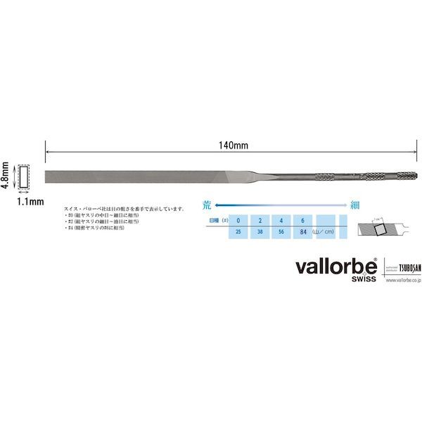 【特長】●スイス製の高品質なヤスリです。●クロム鋼から作られており、高い耐久性と精度に優れた平行度を実現します。●バローベ社は、1899年創業以来、スイスの精密機械式時計や、宝飾など手作りの歴史を支えてきました。●優れた機能やデザインは今なお定評があり、多くの人々に愛用されています。●多様化するニーズに対応し、形状、サイズ、目の粗さなど多様な製品を揃えています。【用途】●鉄をはじめ、あらゆる金属の加工に。【仕様】●タイプ:#2●形状:平●全長(mm):140●刃長(mm):70●刃幅(mm):4.8●刃厚(mm):1.1●柄部φ(mm):2.9【仕様2】●ヤスリ目の粗さ:#0(25cuts/cm 中目〜細目相当)、#2(38cuts/cm 細目〜油目相当)、#4(56cuts/cm 精密ヤスリ相当)【原産国】スイス