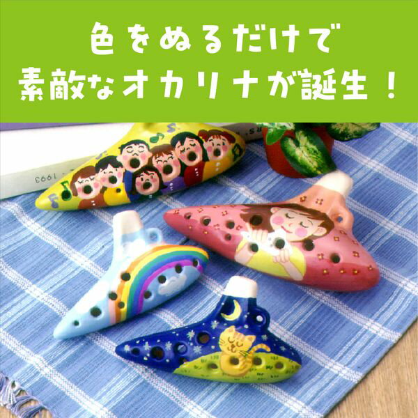 ●商品はイメージです(※工作例の場合があります)色をぬるだけで、すてきなオカリナの誕生です。着色は、同梱のカラーパレットをお使いください。又、クレヨン、色鉛筆等でも色付けできます。いずれも専用ニスを塗って仕上げてください。専用ニス、カラーパレット(絵の具)、ひも付180×85×45mm173g陶製化粧箱入4511910000012アルトC 初心者 陶器 楽器 練習 未着色 無地