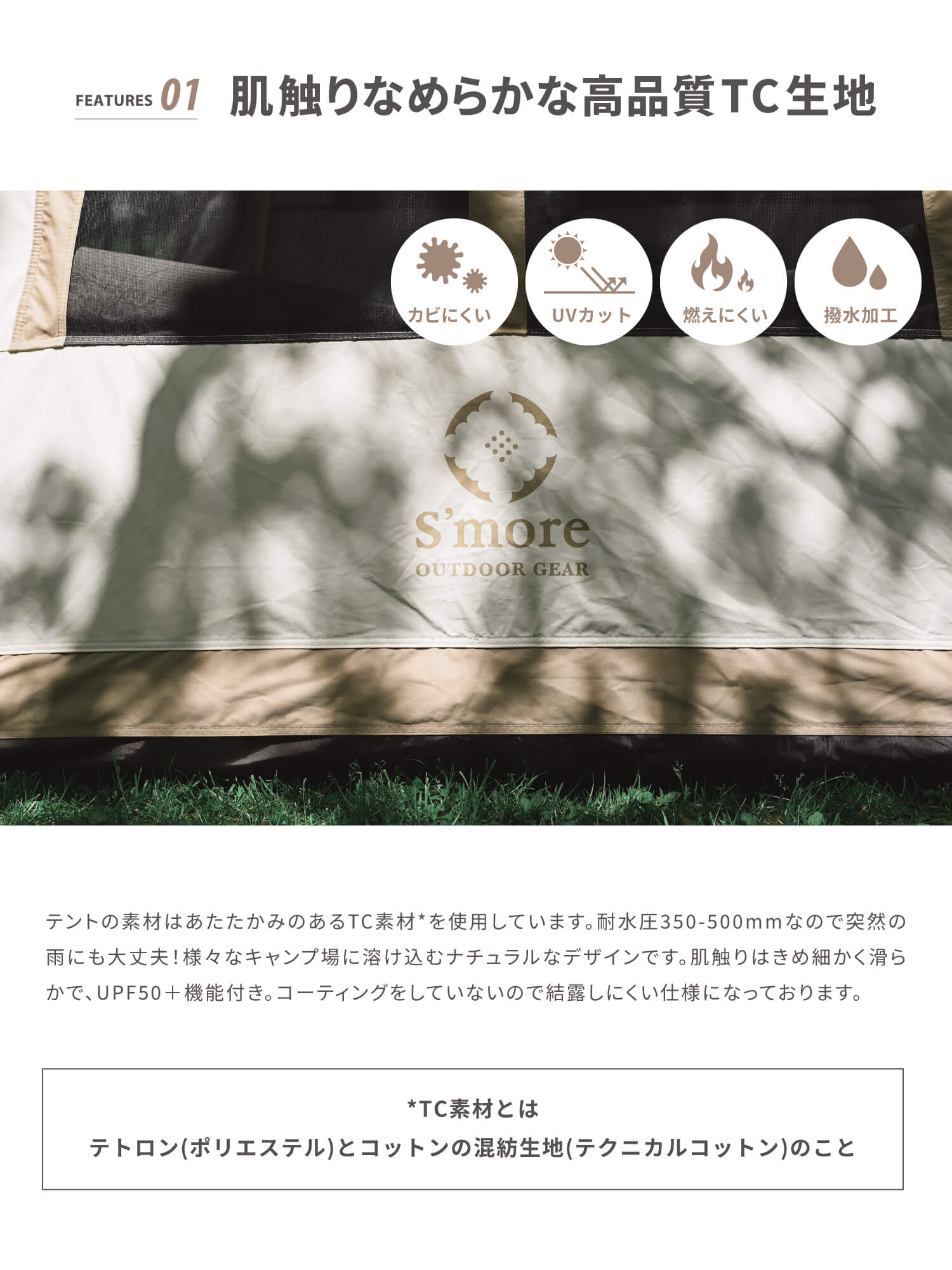 【送料込】New!! S'more / Latte Lodge ラテロッジ スモア ワンタッチ TCテント ファミリー ロッジ型 ポリコットン 1〜3人用 冬キャンプ おしゃれ 撥水 UVカット アウトドア 通気 吸湿 【撥水 難燃 UPF50+ 抗菌】 マイテント ポイント プレゼント お買い物マラソン