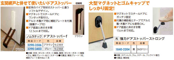 大型マグネットとゴムキャップでしっかり固定!マグネットでスチールドアにガッチリ固定。付属の補助板とテープでアルミ製・木製ドアにも使用OK。ドア底面と床のすき間15cmまで対応。材質:ステンレス、ゴム、スチール、フェライト磁石付属品:補助板