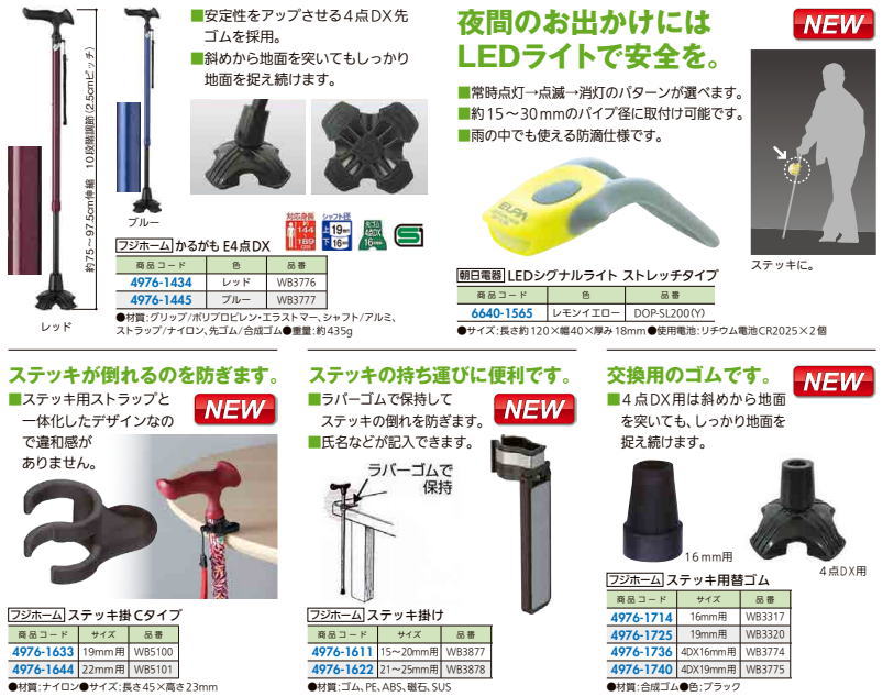フジホーム ステッキ用替えゴム 4点DX19mm用ブラック WB3775