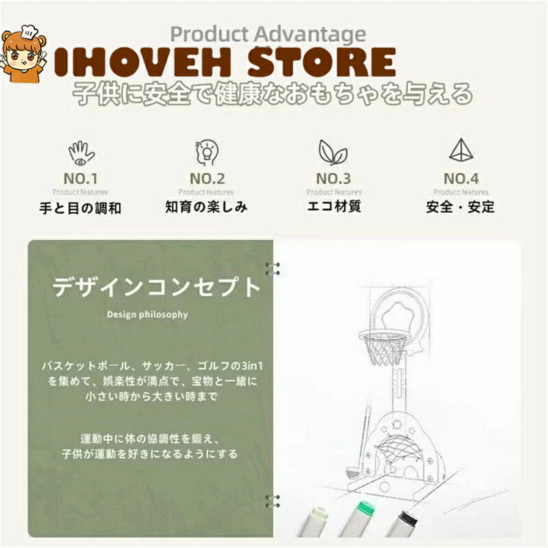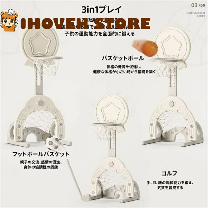 ミニ 3in1 バスケットゴールセット 子供用 室内・屋外対応 バスケットボールフープ 高さ調節可能 バスケット・サッカー・ゴルフ遊び対応 早期教育おもちゃラック 室内遊びスポーツ玩具 男の子・女の子向け 誕生日プレゼント 運動不足解消 組み立て簡単 安全設計【海外通販】