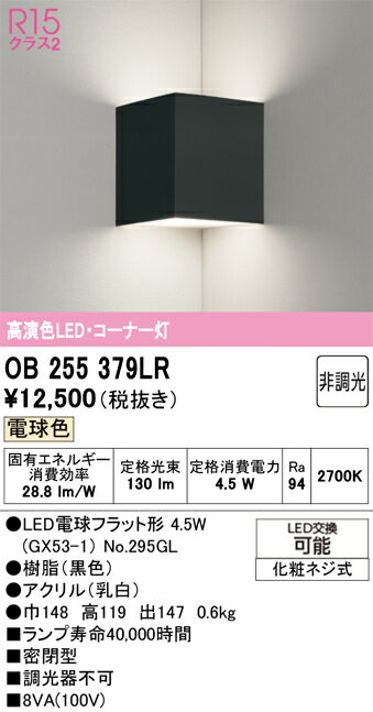 βオーデリック/ODELIC 【OB255379LR】ブラケットライト コーナー灯 高演色LED 電球色 非調光 LEDランプ 化粧ネジ式 黒色