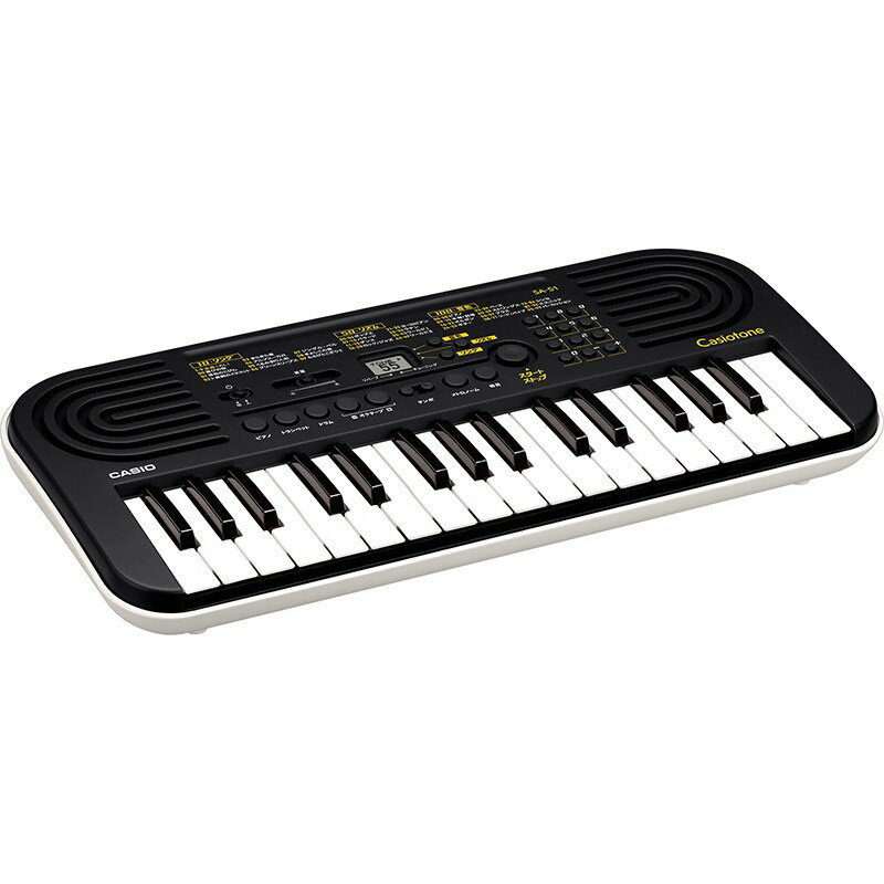 ■商品紹介★カシオトーン ミニキーボードSA-51イケベオリジナルセット!■セット内容・CASIO SA-51(ミニキーボード)・純正電源アダプター AD-E95100LJ・練習用ヘッドホンいい音でしっかり弾けるから、はじめての鍵盤楽器におすすめ。コンパクトなボディに、たくさんの美しい音色、リズム、機能を搭載。小さい手でも弾きやすい、手軽に弾ける32ミニ鍵盤本物の楽器からサンプリングしたピアノ、管楽器、打楽器など、いろいろな楽器の高音質な音色を100種類内蔵押すだけでピアノ、トランペット、ドラムセットの音になる音色ダイレクトボタンポップス、バラード、ダンスなど、多彩な音楽ジャンルの50リズムを搭載自動演奏や、メロディーを消して自分で演奏して楽しめる10曲ソングバンク内蔵10曲ソングバンク:喜びの歌、茶色のこびん、ト長調のメヌエット、きらきら星、アルプス一万尺、くるみ割り人形、グリーンスリーブス、ジングル・ベル、 きよしこの夜、もろびとこぞりて演奏をサポートする多彩な機能オクターブシフト:音の高さを1オクターブ上げ下げでき、幅広い音域をカバーします。チューニング:1Hz単位で音の調整ができ、合奏や合唱に便利です。トランスポーズ:半音単位で音を上げ下げすることができます。メトロノーム:一定のテンポで弾く練習に役立ちます。テンポ調整: 演奏する曲の曲調に合わせて、リズムやメトロノームの速度を変えられます。リバーブ:音に奥行を付けて響かせることで、表現の幅が広がります。最大同時発音数32音:たくさんの鍵盤を同時に弾いても音が出て、音切れしにくい仕様です。液晶画面:操作の状態を見ることができます。正確な音程で、合唱やアカペラなどの音取りにも便利幅446×奥行208×高さ51mmのコンパクトボディで持ち運びもラクラクブラック×ライトグレーのシックなカラー電池でもAC100V電源でも使える2電源方式(電池/ACアダプター別売)ヘッドホン端子付き(ステレオミニジャック)仕様基本情報鍵盤ミニ鍵盤鍵盤数32最大同時発音数32音色数100リズム/パターン数50内蔵曲10曲レッスン機能メロディーオフスピーカー8cm×2アンプ出力0.5W+0.5W電源電源:2電源方式 家庭用AC100V電源(ACアダプターAD-E95100LJは別売)または、単3形アルカリ乾電池(連続動作時間約12時間)/単3形充電式ニッケル水素電池×6本(連続動作時間約10時間)※条件による消費電力3.2W寸法幅446×奥行208×高さ51mm質量1.0kg主な機能/仕様エフェクトリバーブオクターブシフト−1オクターブ〜0〜+1オクターブトランスポーズー12半音〜0〜+12半音チューニングコントロールA4=416〜440〜465Hzメトロノーム拍子:拍子ベル音オフ、1〜9拍子テンポ: 20 〜 255液晶ディスプレイ●その他・音色ダイレクトボタン(ピアノ、トランペット、ドラムセット)・オートパワーオフヘッドホン●(ステレオミニジャック/アウトプット端子兼用)検索キーワード:イケベカテゴリ_電子ピアノ・その他鍵盤楽器_ポータブルキーボード_CASIO_新品 SW_CASIO_新品 JAN:4971850321194 登録日:2022/06/01 キーボード カシオ