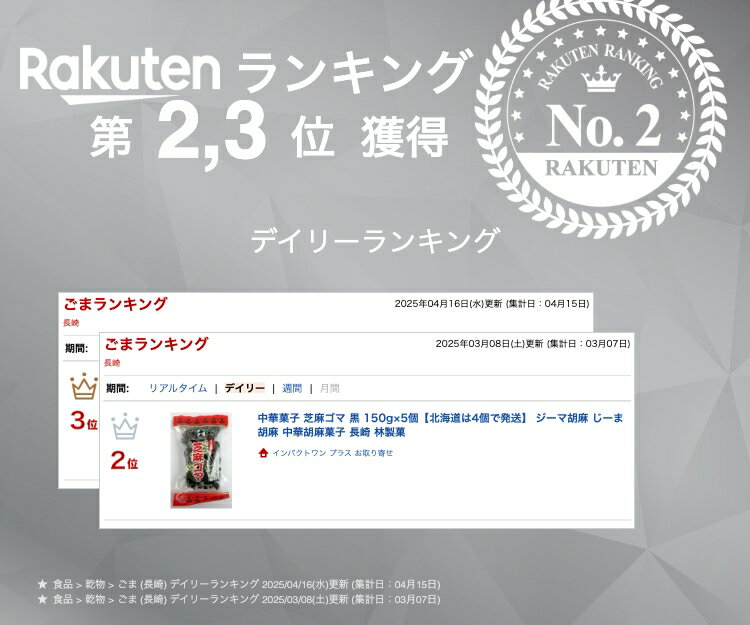 中華菓子 芝麻ゴマ 黒 150g×5個【北海道は4個で発送】 ジーマ胡麻 じーま胡麻 中華胡麻菓子 長崎 林製菓