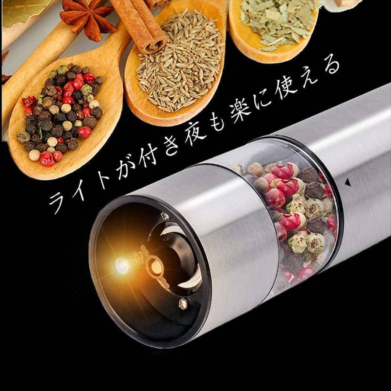 【2本セット】ペッパーミル 電動ペッパーミル 電動ミル ソルト スパイス用 ステンレス 粗さ調節可能 父の日