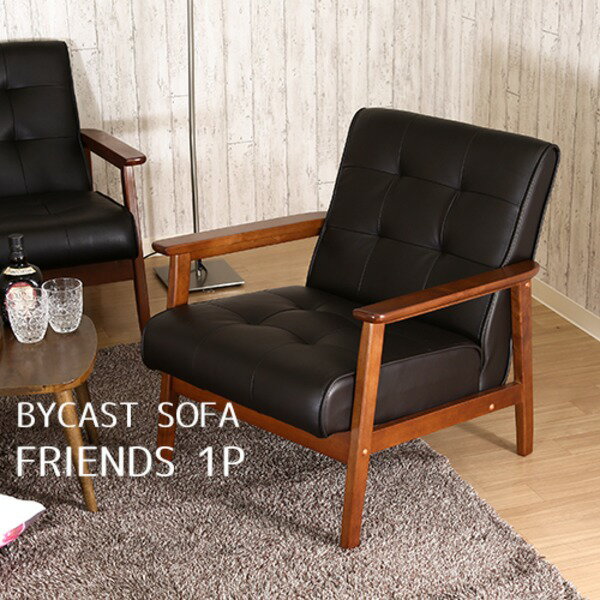 ソファー 幅65cm 木製 肘付き 脚付き コンパクト バイキャスト PU フレンズ リビング ダイニング インテリア家具