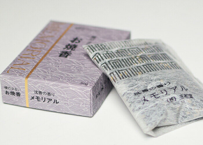 香合(お焼香入れ)もご一緒にいかがですか 煙の少ない お焼香 メモリアル (沈香の香り) 従来のお焼香より煙が少なく、香りも少なくなっています 狭いお部屋や換気の悪い場所、香りが残ると支障のあるところでのご使用に最適です 良いお香は仏様のご馳走と言われています ご先祖様の命日には良いお香を・・・ 木炭粉とミネラル分を母材に、各種の香料や漢方薬、沈香を配合した物を 独自の成形機を使ってチップ状に仕上げています。 したがって従来のお焼香と比べて香りの量も少なく、煙も1/5以下に抑えてあります 内容量 30グラム 箱サイズ 横約7 縦約10 高約2.5センチ メーカー 玉初堂 特徴 お焼香チップ1粒は厚さ約0.6ミリ 幅2ミリ 長さ2〜3ミリ 独自の製法により丁寧に成形しているため砕けて粉になりにくいです 「白檀の香り」はこちらから↑ 「和の香り」はこちらから↑ ネコポス で発送致します ※ネコポス は代金引換、日時指定には対応しておりません。 お届けにお日にちがかかる場合がございます。 お急ぎのお客様は連絡備考欄に「宅急便希望」とご記入ください。 注文確定後、当店で 宅急便送料に修正させていただきます。 ■ 御焼香 ■ 関連商品リンク 香炉 … 御焼香を使う際に使用する器です ノンスリップ焼香膳 … 香炉をのせるお膳です 滑りにくい加工で使いやすい 香炭 … 御焼香を燃やすときに使用する炭 もみ灰 … 香炉に入れる灰 香合 … 御焼香を収納しておく容器です