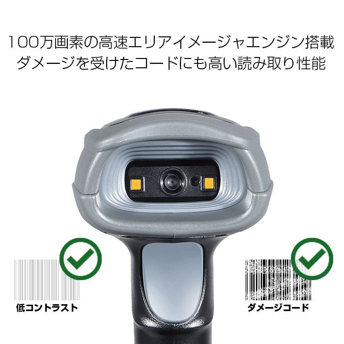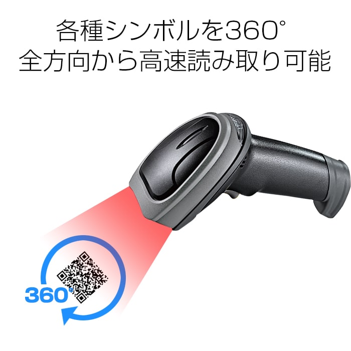 < 製品の特長 >100万画素の高性能2Dエンジンを搭載新開発された1,280×800ピクセル(100万画素)のCMOSセンサーエンジンは広い読取りエリアと高速デコード分解力を持ち、より高速読み取りを実現しました。印刷品質の悪いコードだけでなく、カスレ等によってダメージを受けたコードにも高い読み取り性能を発揮します。紙面はもちろん液晶画面上のコードもらくらくスキャン紙面に印字されるバーコードはもちろん、PCパソコン、タブレットPC、スマートフォンなどの画面に表示されたコードの読み取りもできます。アプリで発行されたクーポンQRコード、会員証コードもらくらく読み取り。最新Bluetooth搭載Bluetooth4.0 class2を搭載しています。通信範囲は見通し30m(※専用クレードル利用時)。従来のBluetooth規格と比べて最新Ver4.0は大幅な省電力化(BLE)仕様、HID、SPP、BLE様々なプロファイルに対応できます。PC、タブレット、スマートフォンなどにも簡単接続できます。日本語QRコードのドライバーなし簡単送信機能を更に進化!QRコードの2バイト文字(ひらがな・カタカナ・漢字などの日本語文字)を送信する際は、設定コードを読取るだけで、ソフトなどを常駐させる必要が無く簡単送信が実現しました。さらに、文字コードShift-JISだけではなく、UTF-8にも対応可能です!メモ帳、MicrosoftRExcel,Word,Outlook,OneNote などのソフトに簡単漢字送信可能です。マイナンバーQRコードにもらくらく読取りできます。無線送信モードBluetoothで端末と接続し、読み取ったデータをリアルタイムに端末に送信できます。もし無線の範囲から離れた際は、データをバッチモードで保存します。 通信範囲に戻るとデータをアップロードします蓄積送信モード読み取ったデータを一旦リーダー本体に蓄積し、送信ボタンを押してから端末に一括送信できます。蓄積容量はJAN13コードで約5,000件保存できます。バッテリー容量2600mAHバッテリーは大容量2600mAHのリチウムイオン電池を採用し、長時間の使用に最適です。フル充電は6時間程度、スタンバイモード(スリーブ状態)は最大2.5日程度。5秒毎に1回スキャン程度は20時間利用可能です。バイブレーション搭載読取り完了後に音と同時にバイブレーション振動でお知らせします。音が聞き取れない環境下でも振動で確認できます。また静穏が求められる環境でも、読取り音を鳴らさずに振動で読取りを確認できます。読取りデータの編集読取りデータの編集が出来ます。ご使用のソフトに合わせてデータの先頭や末尾を削除、データの挿入、またファンクションキーなどの付加、様々な編集設定ができます。安心の保護性能1.5mコンクリートからの落下に耐える構造、防塵防滴もIP54規格に適応しておりますので、最も厳しい環境でその高性能を維持することができます。< 詳細スペック > 内容物本体×1 通信・充電クレードル×1 通信・充電クレードル用USBケーブル×1 日本語クイックマニュアル×1 BluetoothBluetooth Ver4.0 Class2 HID,SPP,BLE通信見通し通信距離:(専用ドングル有)30m,(専用ドングル無)10m ~ 20m メモリー約5000件(JAN13/13byteの場合) スキャン方式1280(H)×800(V)ピクセル,白色LED,5000k,緑LED スキャナ角度±70℃, ±75℃, ±360℃(左右、上下、回転) 最小分解能3mil:code39, 5mil:QRcode 読取深度3mil Code39(3桁): 10-61mm4mil Code128(9桁): 5-88mm13mil UPC-E(6桁):0-179mm20mil Code39(1桁):10-253mm5mil QRcode(40桁):7-65mm6.7mil PDF417(20桁):0-105mm10mil QRcode(20桁):0-134mm20mil QRcode(20桁):0-215mm 外形寸法本体:90.2mm × 70mm × 180mmクレードル:118mm × 89.5mm × 74mm 重量本体:225g(バッテリー含む)クレードル:140g バッテリー容量:2600mAh◆利用時間5秒毎に1回スキャン程度:20時間スタンバイモード(スリープ状態):2.5日程度◆充電時間充電完了(>80%) 6時間程度 消費電流本体:75mA (スリーブ); 600mA (スキャン時)クレードル:60mA (スキャン時); 500mA(充電中最大値) IP加工IP54(防塵防滴程度) 衝撃耐性1.5mの高さからの落下後正常動作 対応コード(1D)すべての1Dコード:二層型GS1DataBarの部分のみ, UPC/EAN/JAN, ISBN, Code39, EAN128, FullASCII, Code128, Inteleave25, Martrix25, CODABAR/NW7, Code11,MSI/PLESSEY, Code93, ChinaPostage, Code32/ItalianPhammacy 対応コード(2D)PDF417/MicroPDF417/DataMatrix, QR Code(訂正レベル:L/M/Q/H, バージョン:1~40まで対応, コントラスト比80%以上) インジケータLED・バイブ・ビープ 温度運用時:0℃ ~ 50℃保管時:-40℃ ~ 60℃ 湿度5% ~ 95% (結露しないこと) 充電方法パソコンのUSBポートUSB-ACアダプタ充電器 対応OS(専用クレードル利用時)Windows:XP(SP3以降)/Vista/7/8/8.1/10 対応OS(QRコード日本語送信機能)Windows XP,Vista,7,8,8.1,10のみ対応※QRコードに制御コードや特殊文字(旧漢字等)が含まれる場合は対応できない場合があります。 対応OS(本体のみ直接通信時)AndroidiOSiPadOS※Bluetooth搭載もしくはBluetoothドングル付きであること※OSのバージョンアップ後、OSの仕様変更により対応ができなくなる場合があります。OSのBluetooth動作に問題がないことを確認してご利用ください。 安全性光源照射:EN62471:2008明るさ:0~100,000LUX(白色ダイオード)電源安全証明:EN60950-1EMC電磁汎用性:EN55022,EN55024環境安全:RoHS