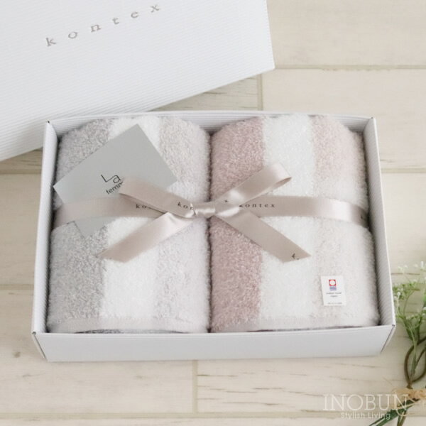 やさしいミックスカラーはお祝いギフトにも♪軽くて柔らか、吸水も◎ 特殊な無撚糸を使ったタオル。 タオルの原料に無撚糸(むねんし)という撚りの少ない糸を使うと、ふわふわの柔らかい仕上がりになります。そんな無撚糸タオルの欠点は、洗濯を繰り返すとパイルがへたってしまうこと。 グレージュのタオルは、その欠点を克服するために独自で開発した糸を使用しており、無撚糸の柔らかさがありながら、洗濯を繰り返してもボリューム感や優しい肌触りが持続します。 グレーとベージュの中間色(グレージュ)を使用したニュアンスカラーが、使うたびに優しい気持ちにさせてくれます。吸水性や耐久性にも優れ、日常使いに大活躍してくれるグレージュは、今治タオルブランド認定商品。贈り物としても喜ばれるタオルです。※必ずお読み下さい!!詳しくはこちらをご覧ください。カテゴリタオル・バスグッズ > タオル・バスグッズ > フェイスタオルカラーピンク x グレー仕様・規格●ギフトBOX:28.0 x 19.0 x 7.5cm ●サイズ:フェイスタオル 34 x 80cm(2枚 ピンク/グレー) ●素材:綿100% ●日本製 ※お取り扱いについて ・ネットに入れて弱流水でのお洗濯をおすすめします。 ・タンブラー乾燥や、強いお洗濯をお避け下さい。【グレージュ GREIGE】 ・無撚糸タオルの特長とは? 普通の糸と比べて撚りが少ない特殊な製法でつくられた糸を使うことで、綿本来のやさしい風合いが実感できます。さらに繊維間にたくさんの空気を含んでいるので、ボリュームが出てふわふわな感触となります。また、吸水性が優れているのも無撚糸の特徴です。 ・いつもでも続く柔らかさとボリューム 無撚糸タオルの柔らかさ・ふわふわな肌ざわりはとても人気ですが、 中には使い始めの毛羽の量と洗濯を繰り返すとパイルがへたってしまうことを気にされる方もいらっしゃるかと思います。 グレージュはそんな欠点を克服するため独自で開発した糸を使用しているので、使い始めから毛羽落ちが少なく、洗濯を繰り返してもボリューム感や優しい肌触りが持続します。 ・グレージュを使用したニュアンスカラー グレーとベージュの中間色(グレージュ)を使用したニュアンスカラーが、使うたびに優しい気持ちにさせてくれます。 吸水性や耐久性にも優れ、日常使いに大活躍してくれるグレージュは、今治タオルブランド認定商品なので贈り物としても喜ばれています。 【kontex コンテックス】 コンテックスは約80年前の昭和9年近藤タオル工場として愛媛県の今治にて創業しました。お客様に「幸福の肌触り」を感じていただくことを第一に、日々肌にやさしいタオルづくりに努めています。工場では最新の技術も取り入れる一方で、昔ながらの織機も現役でタオルを織り続けています。世界中の厳選された綿花と日本の優れた感性と技を活かした染色、織り、縫製で、幸せを感じて頂ける「Kontex」ブランドです。 【今治タオル】 国内最大のタオル産地「今治」豊かな自然に育まれたこの地で企画・製造した自信の逸品です。独自の基準をクリアした安心・安全な今治タオルをお届けします。