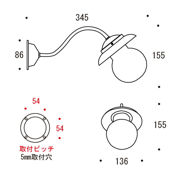 サイズ:幅136×高さ155×奥行345mm 付属品:ミニクリプトン球(E17 40W)、取付ビス、取付面用パッキン、取扱説明書●仕様・寸法については予告なく変更されることがあります。 ●画像はイメージです。代表画像を使用することがあります。 ●真鍮製品は取扱にご注意ください。真鍮は時間とともに色合いが変化していきます。 ●商品は発送準備後のキャンセル、ご返品はできませんがあらかじめご了承ください。 ●お支払い方法で代引きはできません。細かいお時間指定や夜間配送、日曜日祝日配送ができない場合があります。 ●欠品時は60日掛る場合があります。