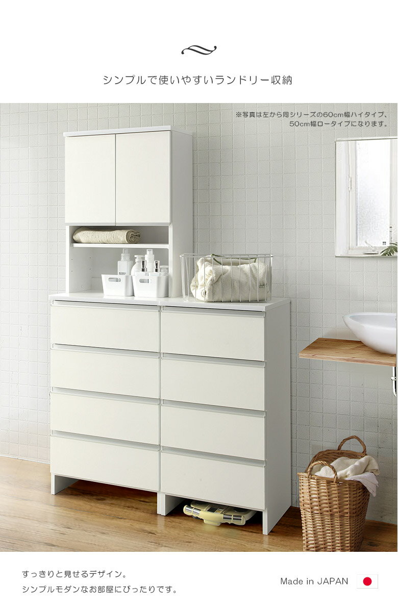 【全商品に使える10%offクーポン!】 ランドリーチェスト ランドリー収納 幅60 4段 縦型 薄型 引き出し収納 おしゃれ 浴室収納 木製収納 国産 日本製 収納家具 ランドリーラック 木製 引き出し 棚 可動棚 大川家具 ホワイト ブラウン ナチュラル スライドレール