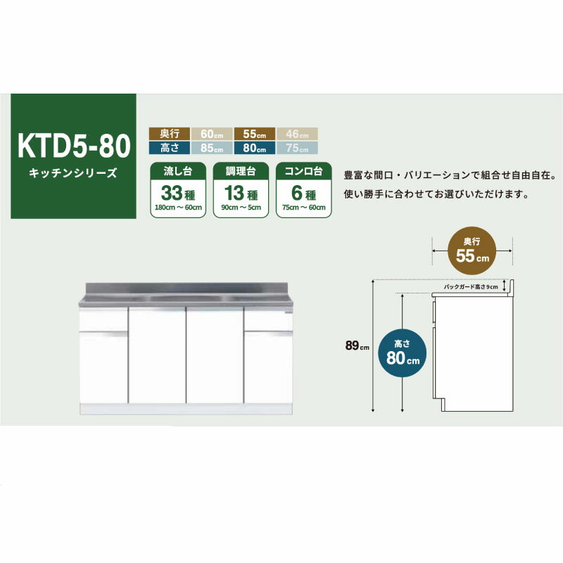 ワンド(マイセット) 調理台 間口40cm KTD5-80-40T KTD5 キッチンシリーズ W400 キッチン