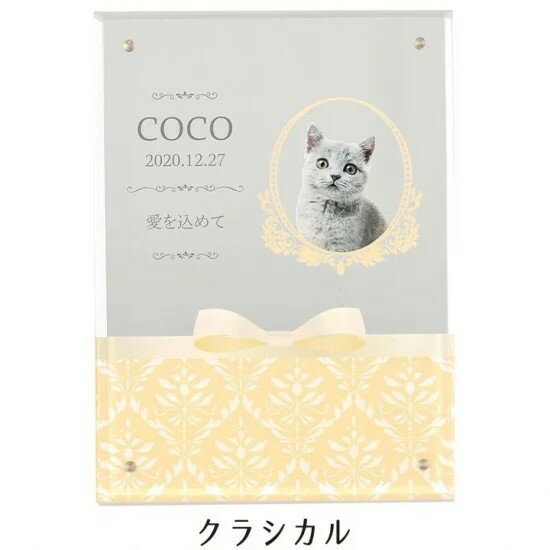 存在感のあるサイズ。特別な写真立てとして、多くの方に選ばれています。 マグネット式のアクリル位牌にお写真・お名前・日付が印刷され、取り外し可能です。 成長の記録として残されるご家族様も多いです。 デザインは9種類からお選びいただけます。 冷蔵庫等、磁石が付くものに貼り付けるなど、他の用途にも使えます。 アクリル製品が選ばれる理由は? 透明感のある印象で、木製の仏具と比べて「仏具」独特の重々しさが軽減される事と、お手頃な価格で仏具としてのクオリティも保ち、ご供養がはじめての方にもお取り扱いやすいところが人気の理由です。 「ステージとフォトフレーム」など、「うちの子」だけのコーディネートでお飾りいただけます。 仏具8点セットやメモリアルステージ、メモリアルBOXと組み合わせることもできます。フォントは8種類からお選びいただけます。存在感のあるサイズ。 特別な写真立てとして、多くの方に選ばれています。 マグネット式のアクリル位牌にお写真・お名前・日付が印刷され、取り外し可能です。 成長の記録として残されるご家族様も多いです。 デザインは9種類からお選びいただけます。 冷蔵庫等、磁石が付くものに貼り付けるなど、他の用途にも使えます。 アクリル製品が選ばれる理由は? 透明感のある印象で、木製の仏具と比べて「仏具」独特の重々しさが軽減される事と、お手頃な価格で仏具としてのクオリティも保ち、ご供養がはじめての方にもお取り扱いやすいところが人気の理由です。 「ステージとフォトフレーム」など、「うちの子」だけのコーディネートでお飾りいただけます。 仏具8点セットやメモリアルステージ、メモリアルBOXと組み合わせることもできます。 フォントは8種類からお選びいただけます。 商品の仕様、サイズ 本体:W 12.5cm × H 17cm 素材:透明アクリル樹脂、磁石 ■当店は手元供養用品の展示販売を行っております。 ⇒いのりのお焚き上げ「還源(げんげん)」のお申し込みはこちらへ ■いっぽ一歩堂宝塚店へのアクセス ■祈りの仏具店 徳島店へのアクセス 年末年始、GWなどの連休を除き、平日はすべて営業しております。土日、祝日は不定休となっておりますので、お電話で休日をご確認いただくか、もしくは毎月末に翌月の営業カレンダーをサイトに更新しておりますので、ご確認の上、ご来店ください。