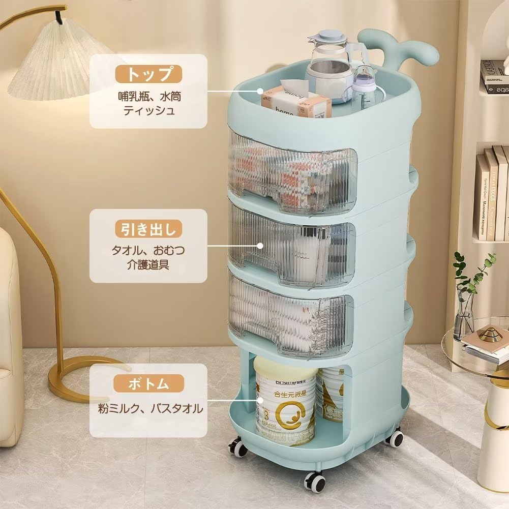 【100枚!5%COUPON+P5倍→実質6462円 11/17まで】収納ワゴン 収納棚 3段・4段 おむつ収納 収納ラック 引き出し 仕切りベビー用品収納 大容量 多層 収納 ケース 透明 プラスチック 移動式 小物収納 新生児 キッズ プレゼント 出産祝い キャスター付き 収納ケース