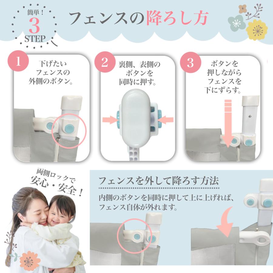 〇サイズフェンス高さ:71cmマットレス高さ:1cm・最大30cmまで可能〇バリエーション本商品は1枚単位での販売です。サイズ9種類1.0m/1.2m/1.4m/1.5m/1.6m/1.7m/1.8m/1.9m/2.0m〇設置可能ベッドマットレスを置く部分が板になっているもの。(ビスを打ち込むため)すのこのベッドは使用できない可能性があります。金網状のベッドは設置不可。マットレスを使わないベッドにはご使用できません。〇ご注意寸法は1・3cm程度、個体により若干の誤差がある場合がございます。ご使用のモニター環境により実物と色味が異なる場合がございます。組立には、大人2名以上での組み立てを推奨します。ポール同士の接続(ポール突起と穴の組み合わせ)は、強度のある商品の為、一度接続すると外しにくくなります。外す際は周囲にぶつかる人や物が無いかご確認の上、怪我などにご注意ください。〇安全にご使用いただくために本製品は生後18ヶ月からのお子様が対象です。ベッド、マットレス、ベッドガードの隙間にお子さまが挟まらないようサイズ表をよくご確認の上ご購入下さい。