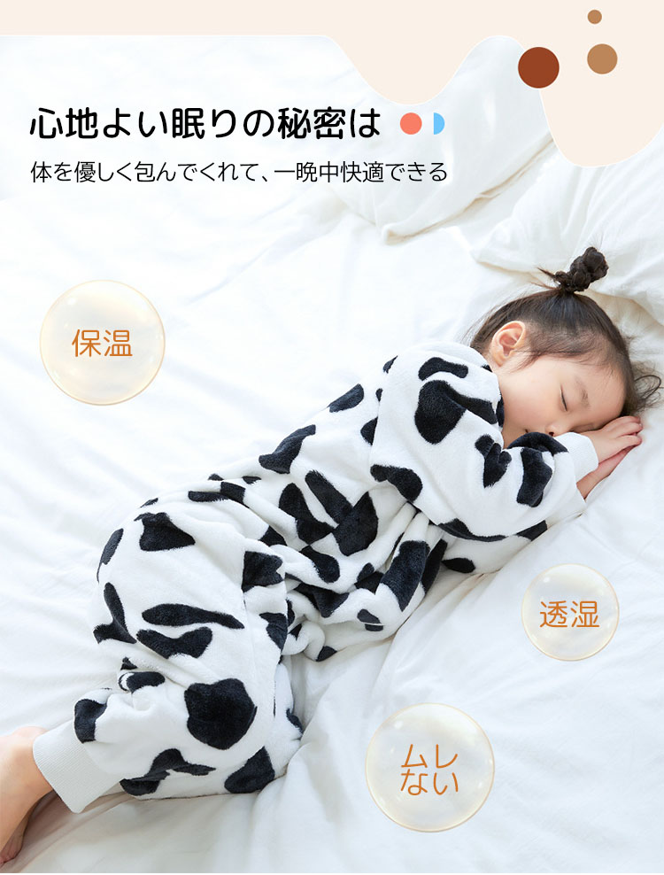 【3630円→実質2970円 P5+5%COUPON+10%OFF! 11/27 01:59迄】パジャマ スリーパー ベビー キッズ 男の子 女の子 フリース生地 秋冬 保温 防寒 寝袋 暖かい あったか 安眠 部屋着 動物柄 可愛い 寝相悪い 寝かえり 布団をける 寝冷え 対策 動きやすい 恐竜 クマ 子ども 幼児