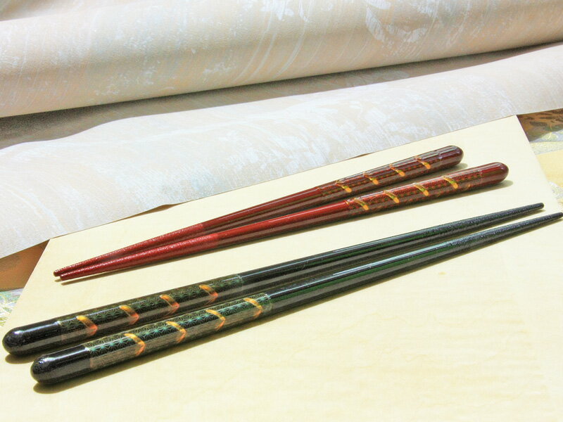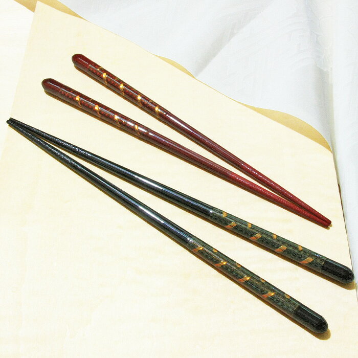 ◆表示価格は夫婦箸にて、 2膳【紙箱・ギフト包装付】の単価となります。 ⇒ [ ギフト対応について詳しくはこちら ] " border="0"> のし掛けの際は上記の項目選択肢をお選び下さい。 特に熨斗掛けのご指定がなければ、代わりにお品書きの掛け紙をお添えし、リボンでお締めしてのギフト包装となります。 ▼通常(手提げ袋)はおつけしておりません。 ギフトをお手渡しの際、手提げ袋をご入用のお客様は購入ページへお進み下さい。 ⇒ [ 手提げ袋購入ページ ] ◇(1膳単位のご購入)(任意のギフト包装組み合わせ)(簡易包装)をご希望のお客様は、単品商品購入ページへお進み下さい。 ⇒ [ 単品商品購入ページ ] ■ ご注文明細書・領収書の発行について (ご注文者様)とお届け先のお名前が違う場合、ギフト・進物等で贈り先様が直接お受取になる可能性がございますので、金額記載のご注文明細等は抜いての発送となります。 ▼ 別途 領収書が必要な際は、ご注文時お申し付け下さいませ。 ◆若狭塗箸でTOPシェアを誇る、イシダが発信する高級ブランド箸(一双) シックな漆調の風合いと 伝統意匠をモチーフにした、和洋折衷のモダンデザインが特徴のお箸です。 日々変遷を遂げる 現代日本の食卓に焦点を合わせ製作されたデザイン箸は、カフェやレストランのお店様で 洋皿に添えられる事も多く、和食から洋食までの 幅広いテーブルコーディネイトをお楽しみ頂けるシリーズとなります。 ◇本漆製品は特性として 塗りたては暗い色調となり、時の経過とともに 空気と光に触れながら、少しづつ明るく透明感のある色合いへと変化を遂げます。 伝統工芸品が塗膜硬化に長期間を要する 本漆の使用に拘り続ける理由もそこにあり、時とともに表情を変え行く色模様を、日々の食事とともにお楽しみ頂ければ幸いにございます。 商品名:<一双>耐熱MR漆塗 ▼荘園 (イッソウ タイネツエムアールウルシヌリ ソウエン) サイズ:【大】23.0cm-黒 【中】20.5cm-赤茶 箸タイプ: 天丸四方胴箔張りMR耐熱漆塗 材質: 鉄木(天然木) 耐久性: 高耐久<食洗機対応> 持ち手の太さ: 【大】−標準値 【中】−標準値 重量感: 【大】−標準値 【中】−標準値 塗装: MR耐熱漆塗 箸の形状 <持ち手=丸みを帯びた4角> <箸先=丸>★乾漆滑り止め 原産地呼称: 若狭塗箸 原産地: 福井県小浜市 ※こちらの塗箸は、箸肌全面に塗装がかけてありますので、長期間の繰り返しの洗浄にも耐えうる、高い耐久性の持つお箸となっております。※こちらは食洗機対応のお箸となっております。 食器洗浄機・食器乾燥機のご使用は可能ですが、電子レンジ・火の元の近くでのご使用はお避け下さい。 ◇ご使用上でのお願い ・洗浄時 長時間水に漬け置きますと箸本体の痛みが早まり、木地の反り・膨張による塗装割れの原因となりますのでご注意下さい。 ・漆器製品が苦手なのは(高温・乾燥・直射日光)となります。 塗装表面の変色・退色の原因となりますので、紫外線の強い場所での保管・火の元の近くでのご使用はお避け下さい。 ▼天然木素材のお箸は1本づつ 木目・密度・重量に必ず微妙な誤差が生じます。 画像色合いについてもブラウザ・ディスプレイ設定により、実物と異なる場合がございますのでご留意の程お願い致します。