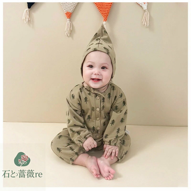 送料無料 ベビー服 長袖 ロンパース カバーオール 長袖 ベビーパジャマ ルームウエア 女の子 男の子 3〜24ヶ月 ベビー肌着 木柄 月柄 新生児服 春 秋 冬 66 70 80 90cm 北欧風 柔らかい 出産祝い プレゼント 楽天海外通販