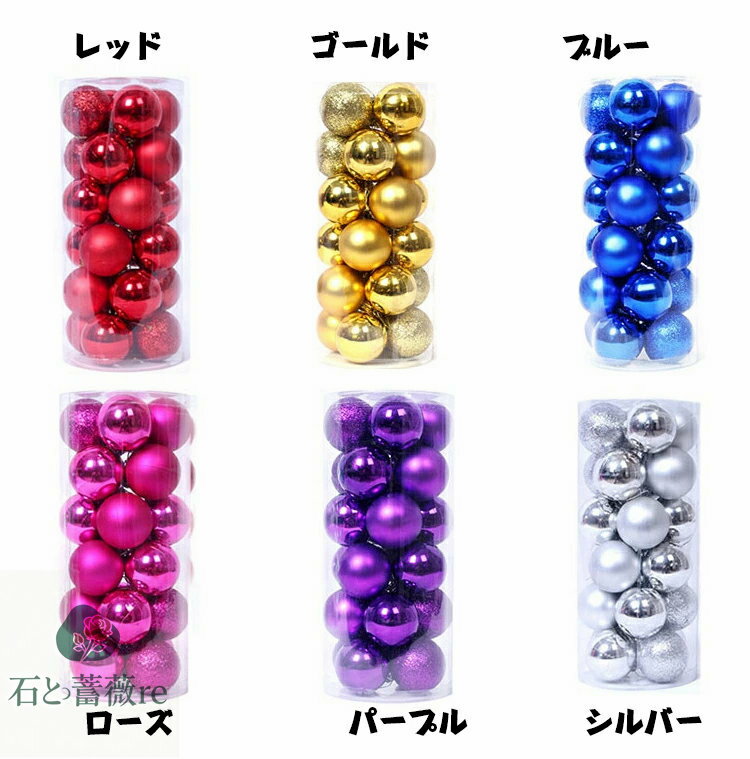 送料無料 クリスマス オーナメントボール24個セット ボール直径6cm 欧米 おしゃれ 装飾 飾り ディスプレイMerry House レッド ピンク ゴールド スカイブルー グリーン 楽天海外通販