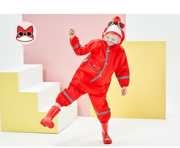 【メール便送料無料】キッズ レインコート レインポンチョ レインウェア 厚手 女の子 男の子 上下 子供用 入学 入園 小学生 防水 かわいい レインパー レインスーツ 自転車 おしゃれ 雨具 合羽 カッパ 通学 移動教室 運動会 遠足 林間学校 キャンプ 狐 恐竜 熊 赤 緑