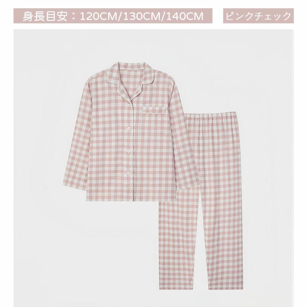 パジャマ ルームウェア 120〜140cm 上下セット 長袖 前開き チェック柄 無地 柔らか 通気性 吸水性 吸湿性 レディース 春秋冬用 部屋着