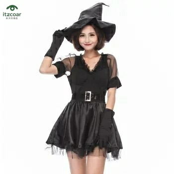 魔女 コスプレ ウィッチ 魔法使い 帽子付き コスプレ コスチューム 衣装 仮装 悪魔 仮装用 ハロウィーン ハロウイン パーティー グッズ コスプレ ミニ丈 黒 コスプレ衣装 大人用 仮装 こすぷれ 定番 イベント cosplay 舞台衣装 演出服 学園祭MS2-560