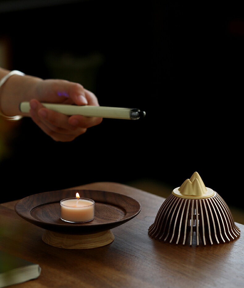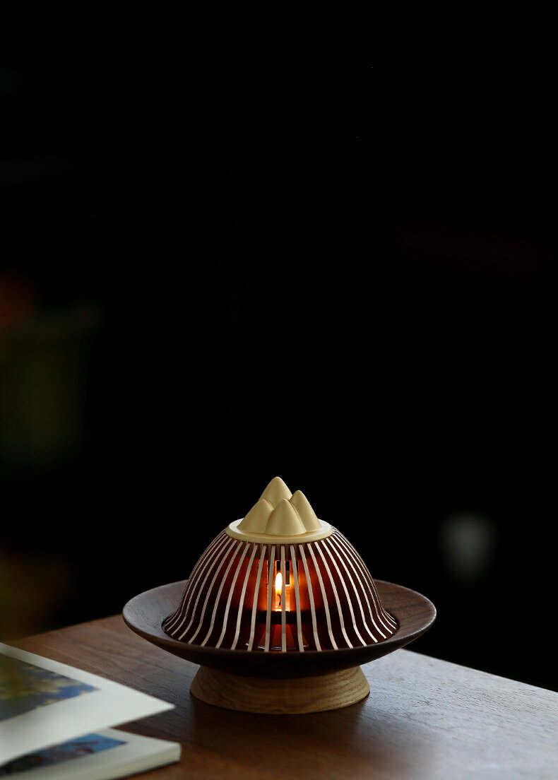 見山 お香・線香立て アルミ 高台 香皿 キャンドルホルダー キャンドルウォーマー ティーランプ キャンドルスタンド キャンドルスタンド キャンドル立て 銘木 ウールナット 工芸品・縁起物 IwaiLoft
