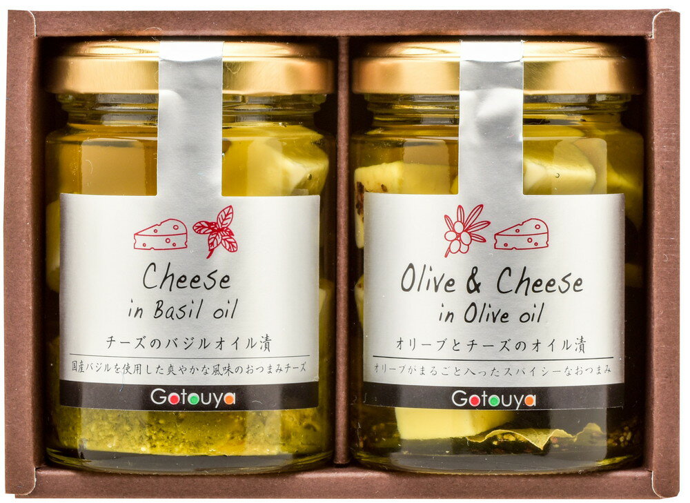 山形 「後藤屋」 チーズのオリーブオイル漬2本セット チーズのバジルオイル漬100g×1、オリーブとチーズのオイル漬100g×1 プレゼント ギフト 贈り物 贈答 記念日 人気 熨斗対応 名入れ 送料無料 産地直送