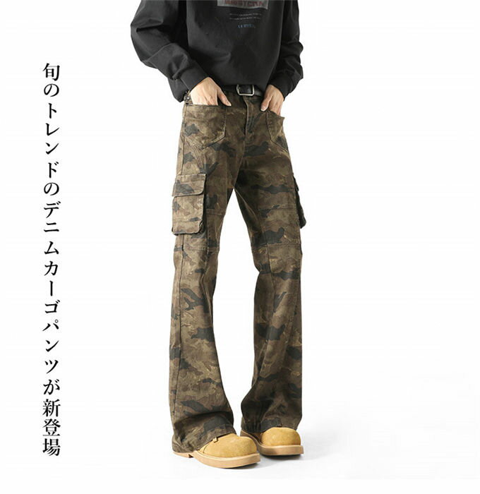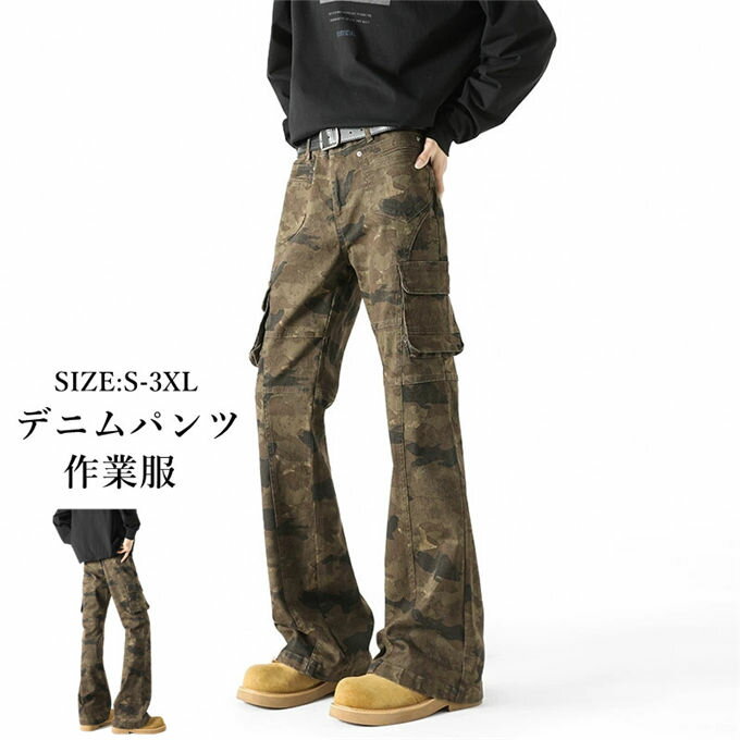 カーゴパンツ メンズ デニムパンツ ジーンズ 迷彩柄 ボトムス ワイドパンツ ロングパンツ ポケット付 ヒップホップ ゆったり カジュアル 作業服 大きいサイズ アウトドア かっこいい レトロ 春 秋 韓国 ファッション 送料無料