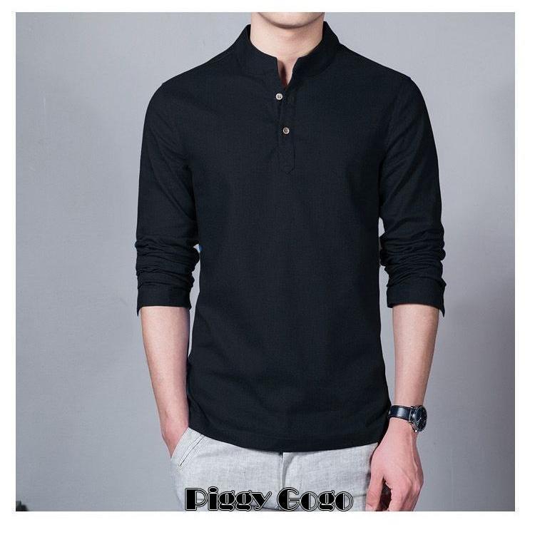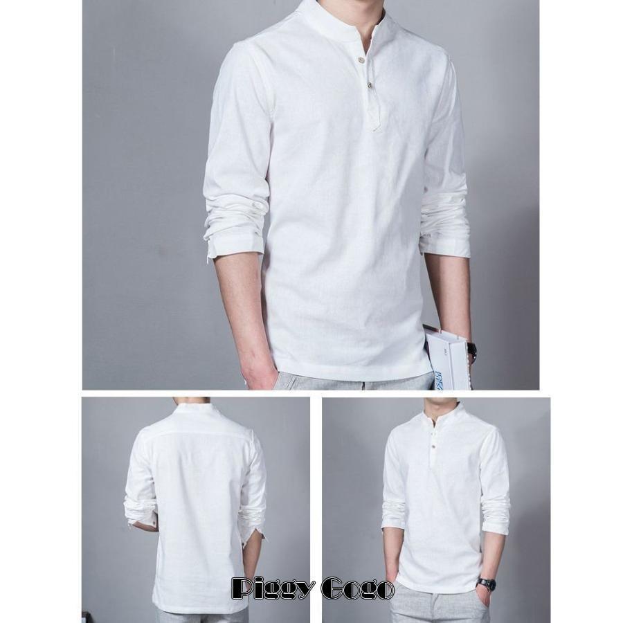 ヘンリーネックシャツ シャツ メンズ トップス スタンドカラー ボタン たて襟 シャツ 長袖 無地 長袖シャツ カジュアルシャツ メンズシャツ ホワイ