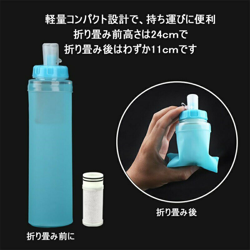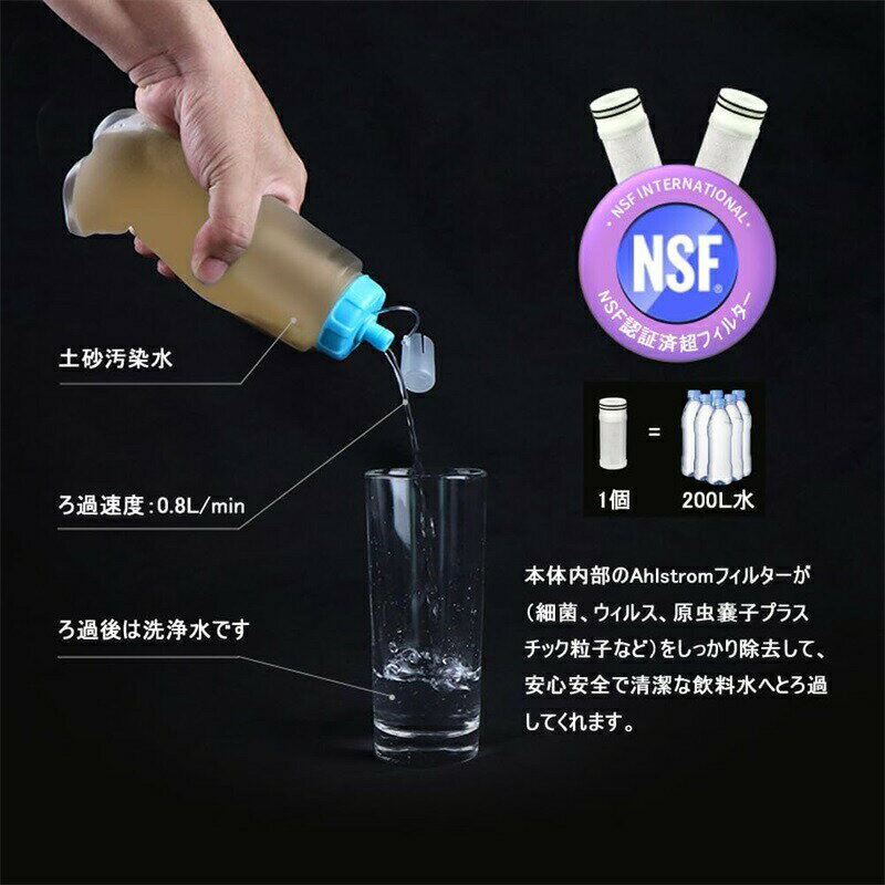 携帯浄水器 簡易濾過器 アウトドア 非常用 災害用 BPAなし 折りたたみ式 直飲み 繰り返し使用 コンパクト 持ち運び便利 登山 キャンプ用 地震 津波 台風対策 防災グッズ