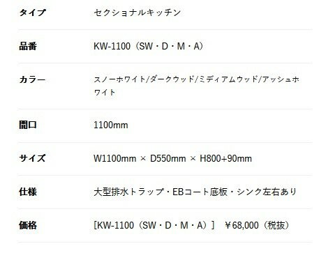 正規代理店 アイオ産業 KWシリーズ 品番KW1100 貸家 アパート マンション 戸建て 貸倉庫 貸店舗 流し台単品 (左シンク 右シンクもあります)間口110センチ 奥行55センチ 高さ80センチ バックガード迄90センチ カラー4色 【エリア限定送料無料】