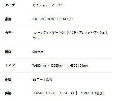 正規代理店 アイオ産業 KWシリーズ 調理台 品番KW600T 貸家 アパート マンション 戸建て 貸倉庫 貸店舗 調理台単品 間口60センチ 奥行55センチ 高さ80センチ バックガード9センチ 選べる扉カラー4色 【エリア限定送料無料】