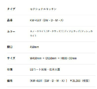 正規代理店 アイオ産業 KWシリーズ 調理台 品番KW450T 貸家 アパート マンション 戸建て 貸倉庫 貸店舗 調理台単品 間口45センチ 奥行55センチ 高さ80センチ バックガード9センチ 選べる扉カラー4色 【エリア限定送料無料】