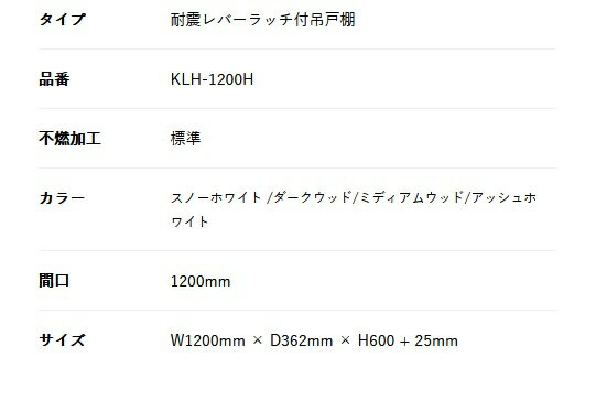 正規代理店 アイオ産業 KWシリーズ 吊戸棚 品番KLH1200 貸家 アパート マンション 戸建て 貸倉庫 貸店舗 吊戸棚単品 間口120センチ 奥行36.2センチ 高さ50センチ 選べる扉カラー4色 【エリア限定送料無料】