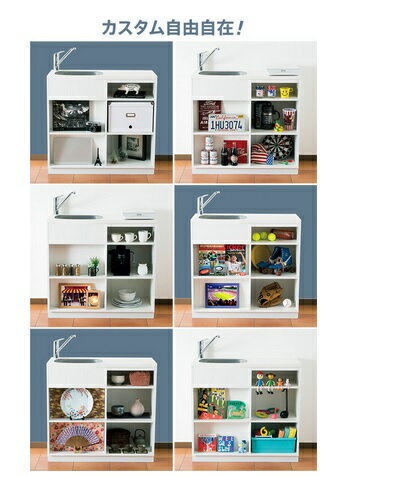 商品情報カラーボックスキッチン箱型ミニキッチンの部屋のリニューアルに採用しました。狭いキッチンスペースに奥行400mmは大きな魅力です。1R、1Kではビルトイン加熱機器は使わないことが多いので、Custom Cubeの仕様は理想的です。オプション 別途お求めください。レンジフード/シングルレバー混合栓/IHヒーター/1口コンロアイオ産業 奥行400mmの超薄型なので、どんな場所にも。市販のカラーボックス用インナーケースがピッタリのサイズなので自由にカスタマイズできます。 *シンク左右あり。 【エリア限定送料無料】 お気に入りのものを収納してあなただけのオリジナルキッチンをアレンジできます。 5