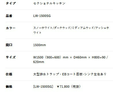 アイオ産業 LWコンパクトシリーズ 品番LW1500SG 貸家 アパート マンション 戸建て 貸倉庫 貸店舗 一連式流し台 左シンク(右側シンクもあります)間口150センチ 奥行46センチ 高さ80センチ バックガード迄90センチ カラー4色 【エリア限定送料無料】