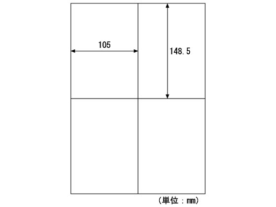 【仕様】●入数:100シート●サイズ:A4(210×297mm)●紙厚:0.13mm●ラベルサイズ:105×148.5mm●坪量:約115g/m2●面付け数:4面(2×2)●注文単位:1冊(100シート)●対応プリンタ:カラーレーザー、カラーインクジェット、カラーコピー、モノクロレーザー、モノクロコピー、熱転写●GPNエコ商品ねっと掲載【検索用キーワード】hisago ラベル マルチプリンタ 宛名 表示 ELM003各種プリンタ(レーザ/インクジェット/コピー機)でマルチに印刷可能。カラーレーザプリンタ、カラーコピー機にも対応しています。
