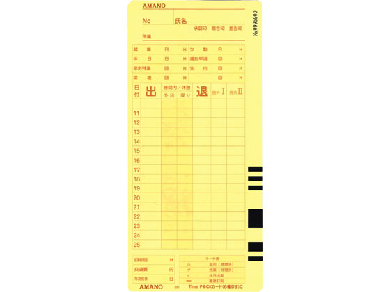 アマノ タイムカード TimeP@CKカード 6欄印字 C 100枚 アマノ タイムカード タイムレコーダー 事務機器