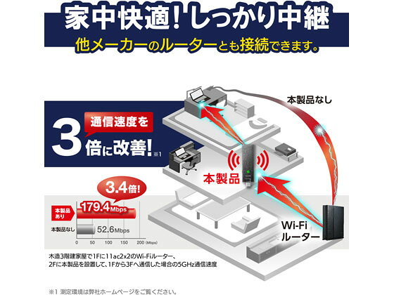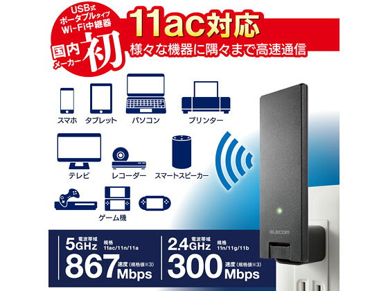エレコム 超薄型11ac 2x2中継器 WTC-1167US-B 無線LAN ネットワーク機器 パソコン 家電