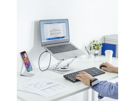 【商品説明】2つのヒンジを搭載し角度と高さの調整ができ、さらに360°回転する事もできるアルミ製のファン内蔵ノートパソコンクーラースタンドです。放熱性に優れたアルミ製です。さらにファンを搭載する事で冷却効果が格段にアップします。直径10cmの静音ファンを採用しています。ファンの音はほとんど気になりません。風量調整は、背面のダイヤルで無段階調整ができます。【仕様】●消費電流:450mA●最大風量:21.6CFM●ノイズレベル:18dBA●ファン回転数:最大1000rpm(速度調整可能)●ファンサイズ:W108×D108×H17mm●ファン数量:1個●最大荷重:3kg●サイズ:W240×D222×H46mm●重量:930g●ケーブル長:約55cm●中継用USBポート:1ポート ※USB−AC充電器からも電源供給は可能ですが、USBハブ機能は使用できません。 ※USB2.0専用です。●セット内容:本体、USBケーブル、六角レンチ、取扱説明書【備考】※メーカーの都合により、パッケージ・仕様等は予告なく変更になる場合がございます。【検索用キーワード】サンワサプライ さんわさぷらい SANWA SUPPLY スタンド型ノートPCクーラー スタンド型ノートパソコンクーラー ノートPCスタンド ノートパソコンスタンド ノートパソコンクーラー ノートPCクーラー TK−CLN30U TKCLN30U PC用品 PCアクセサリー X004NM無段階で角度と高さが調整でき360度回転する、アルミ製スタンド型クーラーパッド