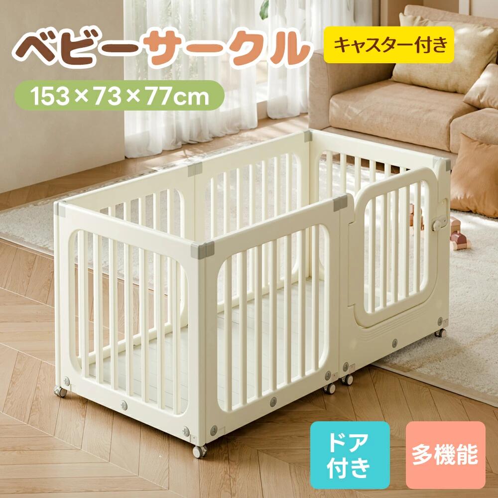 ベビーサークル キャスター付き プレイヤード 小さめ プレイサークル ドア付 移動ラクラク ベビーフェンス 設置簡単 ベビーガード 柵 キ