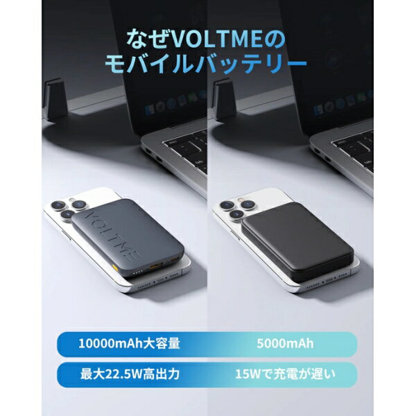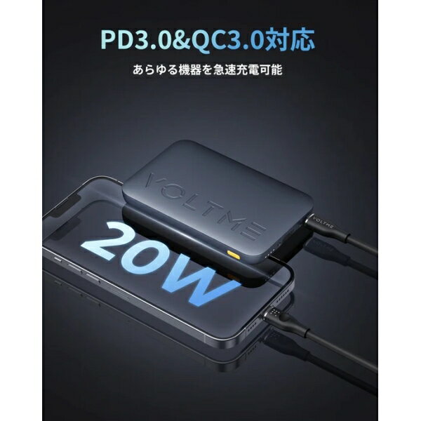 VOLTME(ボルトミー) 出力22.5W USB-C + USB-A 10000mAh 薄型 モバイルバッテリー ケーブル付属(ディープブルー) Hypercore 10K B3023