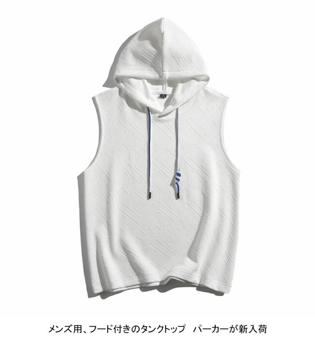 【送料無料】タンクトップ メンズ パーカー フード付き ノースリーブ 無地 伸縮性 通気性 プルオーバー トップス カジュアル 柔らかい ゆったり 体型カバー レイヤード シンプル 快適 夏用 男性用 重ね着 ジム ランニング スウェット ベスト スポーツウエア