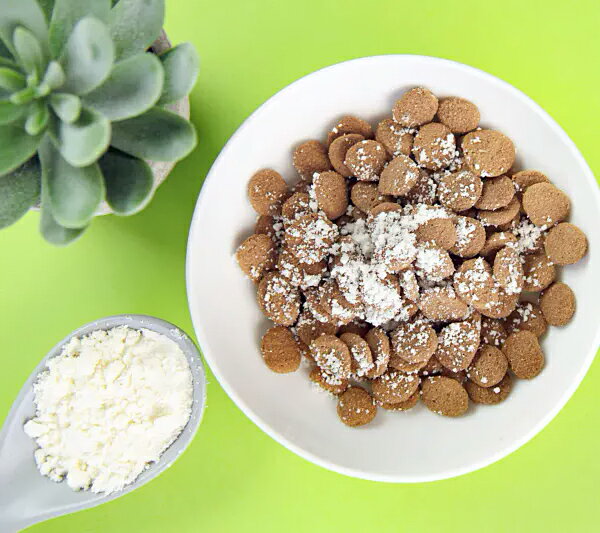 正規品 犬の母乳に近い栄養バランスを目指して設計された、犬用粉ミルクです。 子犬の哺育はもちろん、成犬・シニア犬の栄養補給や食欲サポートにも活躍。プロバイオティクス(生きた乳酸菌)とプレバイオティクスをダブル配合し、腸内環境にも配慮しています。 水に溶かしてミルクとして与えるほか、ドライフードへのトッピングにもおすすめ。毎日の健康維持をやさしく支える、続けやすいミルクです。 サイズ違いもございます 犬用ミルクパウダー 70g 犬用ミルクパウダー 180g 犬用ヤギミルクパウダー 70g 犬用 ヤギミルクパウダー 180g esbilac 原材料 植物油*1)、カゼイン、乾燥ホエイプロテイン濃縮物、クリーム、脱脂粉乳、乳化剤、グァーガム(食物繊維源)、フラクトオリゴ糖、粉末セルロース、デキストロース、ケイ酸カルシウム、ビフィドバクテリウム・ビフィダム、ラクトバチルス・ファーメンタム、ラクトバチルス・アシドフィルス、ラクトバチルス・カゼイ、エンテロコッカス・フェシウム、ラクトバチルス・プランタラム、ペディオコッカス・アシディラクティシ、増粘安定剤(マルトデキストリン)、アミノ酸類(DL-メチオニン、L-アルギニン、タウリン)、ミネラル類(第二リン酸カルシウム、塩化カリウム、硫酸マグネシウム、クエン酸カリウム、リン酸二カリウム、鉄アミノ酸キレート、硫酸亜鉛、食塩、リン酸三カルシウム、銅タンパク化合物、硫酸マンガン、ヨウ素酸カルシウム、亜セレン酸ナトリウム)、ビタミン類(塩化コリン、ナイアシン、ビオチン、パントテン酸カルシウム、A、B1、B6、B2、E、D3、葉酸、B12)、酸化防止剤(ミックストコフェロール、パルミチン酸アスコルビル、ローズマリー抽出物) *1) 上記の酸化防止剤にて保存) 代謝エネルギー 509kcal/100g 成分 成分名 数値 たんぱく質 33.0%以上 脂質 40.0%以上 粗繊維 0.5%以下 灰分 5.0%以下 水分 5.0%以下 プロバイオティクス 130,000CFU/g 1日当たりの給与量の目安 ≪生後6週齢までの子犬≫ 体重 粉ミルク 温湯 100g 9g 30ml 200g 15g 60ml 400g 27g 105ml 600g 39g 150g 800g 54g 210ml 1kg 70g 270ml 1.5kg 100g 400ml 2kg 145g 550ml 給与量を参考に粉ミルクを温湯で溶かし、1日6~8回を目安に40℃前後に冷ましてから、授乳してください。少なくとも生後2日間は、母乳(初乳)を与えてください。離乳食等と併用の際は、適宜、粉ミルクの量を調整してください。 ≪離乳後の子犬、成犬≫ 体重 粉ミルク 体重3kgにつき 粉ミルク3g 粉ミルクを主食等(フード)に混ぜて給与するか、適量の温湯で溶かし1日1〜数回飲用させてください。摂取カロリーに注意し、フードの量を調整してください。 ≪妊娠・授乳期の母犬≫ 体重 粉ミルク 体重3kgにつき 粉ミルク6g 粉ミルクを主食等(フード)に混ぜて給与するか、適量の温湯で溶かし1日1〜数回飲用させてください。摂取カロリーに注意し、フードの量を調整してください。 哺乳ボトル等は清潔なものを準備し、溶かしたミルクは冷蔵保存の上、24時間以内に使い切ってください。 口を付けた飲み残しは、都度廃棄してください。 ヒトには使用しないでください。愛犬の健康と笑顔をはぐくむ母乳に近い成分の粉ミルク 【粉ミルク/全年齢/犬用】 エスビラックは米国で1930年から続く犬猫用ミルクの老舗ブランドとして、世界的に認知されています。 幼齢期からシニア期までのオールステージに対応し、ミルクだけでなくフードへ粉のままトッピングとしてお与えいただけます。 また、お腹の健康もサポートするため、日頃の食事に加えることで腸内フローラの正常な働きをサポートします。 粉ミルクは幼齢期だけでなく、不足しがちな栄養の補助食や食の細い子の栄養補給など、幅広い用途でご活用いただけるおすすめな一品です! 優れた栄養価!粉ミルクの強み 一般的に粉ミルクは赤ちゃんのためのごはんとして知られてきました。 しかし、近年粉ミルクが持つ、優れた栄養価や栄養バランスが再評価されるようになり、大人も積極的に取り入れたい食材としての認識に変わりつつあります。 不足しがちな栄養の補助食として、食の細い子の栄養補給として、関節や筋肉のカルシウム源としてなど、幼齢期からシニア期の様々なニーズに応える便利な食材としてご活用いただけます。 お腹の健康もやさしくサポート エスビラックは腸内フローラの正常な働きをサポートするために、プロバイオティクス(生きた乳酸菌)とプレバイオティクス(善玉菌の栄養源)をダブルで配合しています。 また、母乳に近い成分に調整しているので、ミルクでお腹を壊しやすい子でも安心してお与えいただけます。 7種類の乳酸菌とビフィズス菌配合で強いお腹づくりをサポート 酸や熱に強く生きたまま腸まで届きやすいラクト菌を配合 乳酸菌やビフィズス菌のエサとなるフラクトオリゴ糖や食物繊維を配合 お腹の中で善玉菌が増えやすく腸内フローラの正常な働きをサポートを 米国で誕生!エスビラックの歴史 エスビラックは米国に籍を置くPet-Ag社から、子犬・子猫の成長に不可欠