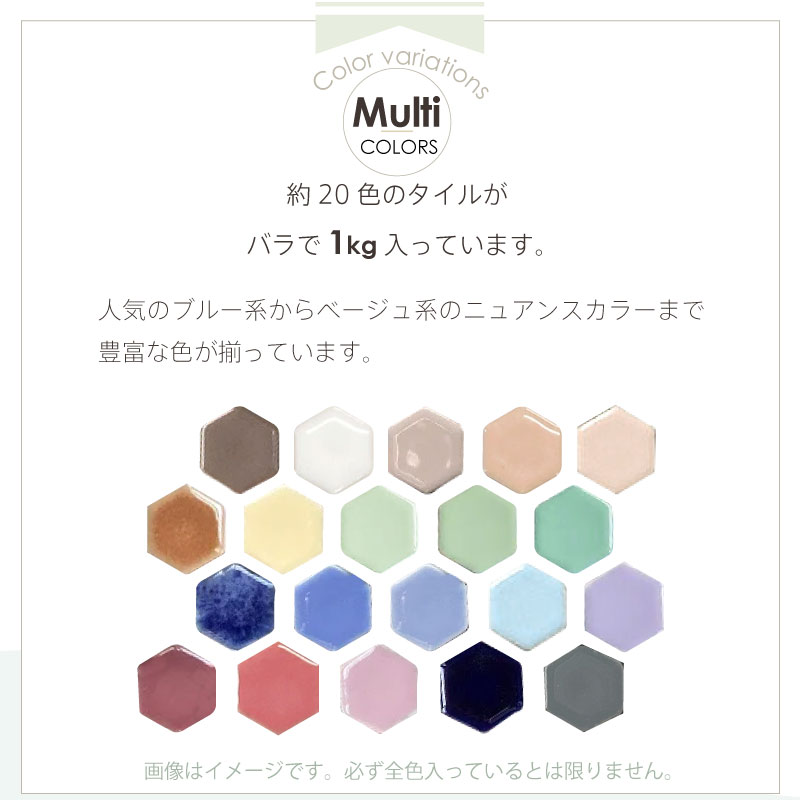 ヘキサゴン タイル マルチカラー 六角形 ミックス タイルクラフト バラ 1kg 美濃焼 MARUMAN 日本製 焼き物 DIY タイルのある暮らし 家づくり 工作 丸万商会 モザイクタイル ハンドメイド リノベ 工作