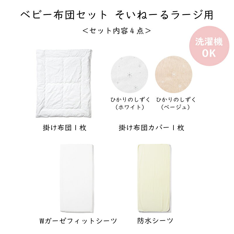【yamatoya認定店】大和屋 そいねーるラージ用 ベビー布団セット 内容4点(掛け布団、掛け布団カバー、Wガーゼフィットシーツ、防水シーツ) ベビーベッド 乳児ベッド 育児 赤ちゃん 寝かしつけ yamatoya