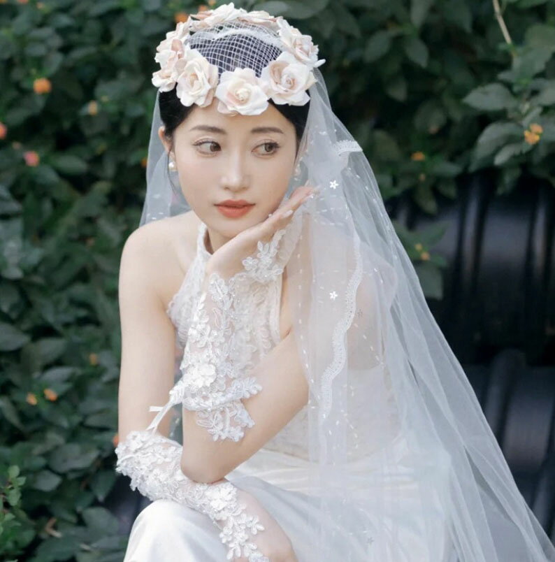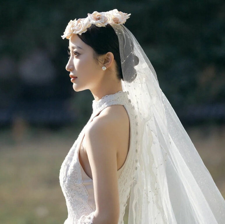 ウエディング 小物 花冠+ロングベール2点セット 薔薇花 フラワー ヘッドドレス ロング ベール 森ガール レトロ ヴィンテージ系 ベール 花嫁 結婚式 披露宴 前撮り ウエディングフォト フォーマル ウェディングヘッドドレス 白