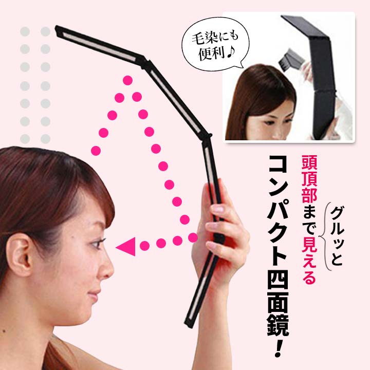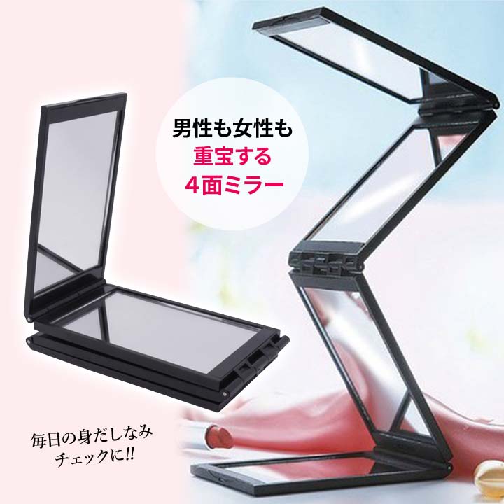 どこでも広範囲4面ミラー 便利 ミラー 鏡 カガミ 手持ち スタンド 折りたたみ 卓上 四面鏡 四面ミラー コンパクト 毛染め 化粧 メイク 見やすい 身だしなみ